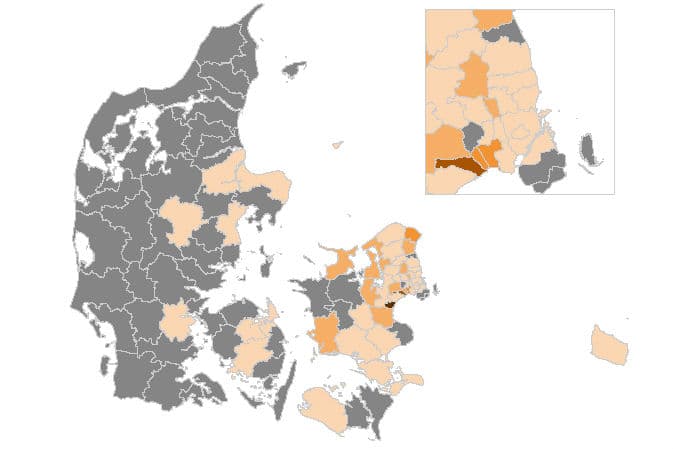 I forhold til indbyggertal ser det lige nu værst ud i Solrød, som har over 50 smittede pr. 100.000 indbyggere.