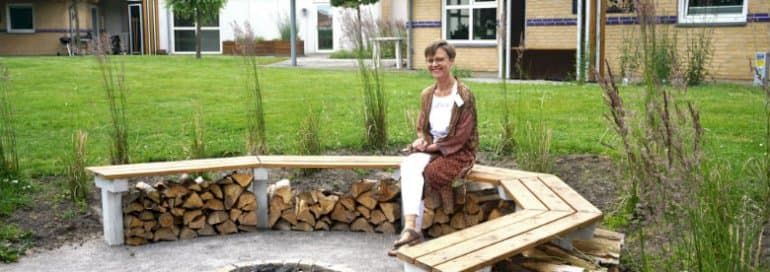 Forstander Lone Svendsen på Forebyggelses- og Rehabiliteringscenter Ulsteds bålplads.