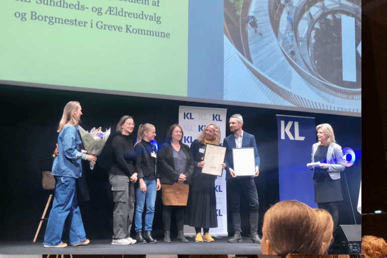 Til at overrække prisen var Jesper Bernstorf Jensen, chefredaktør ved Dagens Medicin og Pernille Beckmann (V), medlem af KL's Sundheds- og Ældreudvalg og borgmester i Greve Kommune.