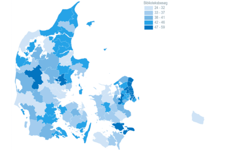 Omvendt er Vesthimmerland, Hedensted og Thisted de kommuner, hvor færrest svarer, at de har besøgt et bibliotek. Her er det kun omkring hver fjerde borger.
