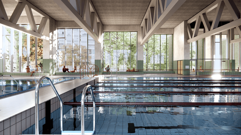 Oven på svømmehallen opføres et botilbud med 35 boliger fordelt på tre etager og med en stor tagterrasse. Plejehjemmet, som bygges i næste fase, får 75-80 boliger fordelt på op til fem etager. Samlet vil byggeriet dække cirka 18.000 m2 og skabe nye rammer for både fritid og bolig på Østerbro.