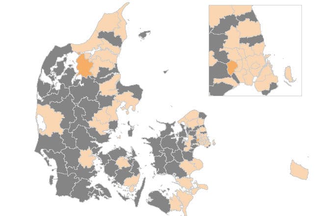 Vesthimmerland og Albertslund er de eneste kommuner, som har haft over ni smittede pr. 100.000 indbyggere den seneste uge, men begge ligger under 20.