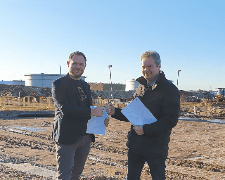 FREDERICIA: Det er en historisk aftale, der er indgået mellem Tvis – Trekantområdets Varmetransmissionsselskab IS og Everfuel tirsdag. Parterne er således blevet enige om, at overskudsvarme fra Everfuels kommende 20 MW elektrolyse-anlæg i Fredericia skal bruges som fjernvarme. Det er første gang nogensinde, at overskudsvarme fra PtX-teknologier bliver udnyttet til fjernvarme i Danmark.